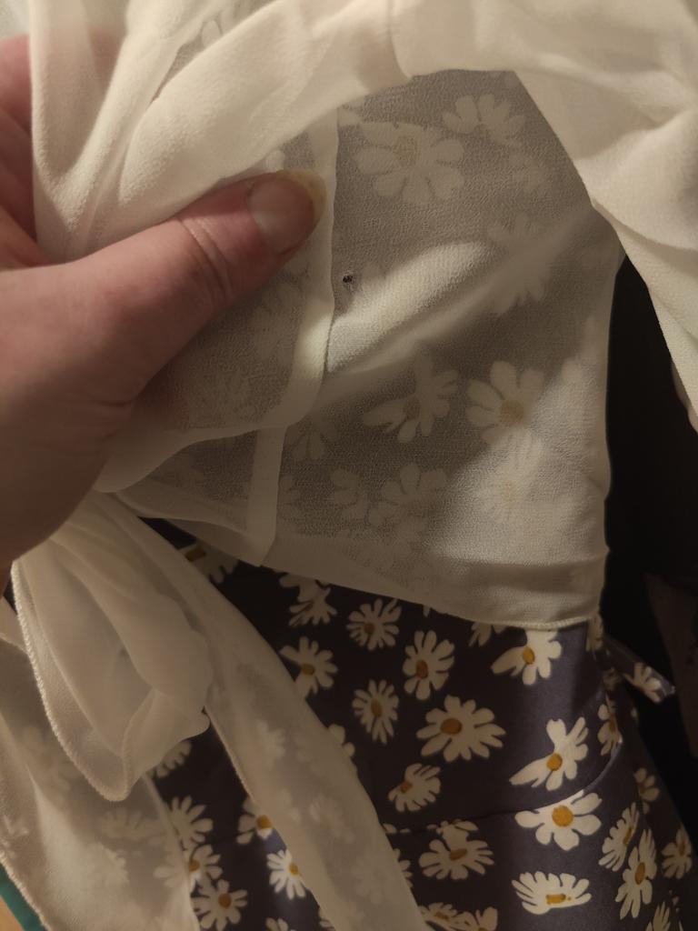 🤍💟💜👗Purple Flower Dress w/ Shawl👗💜💟🤍 I was SUPER excited for this to come but I don't know how much I like it now that it's arrived...🙁 It's a bit big😕, the 'cups' print thing on breasts do not sit right. Constantly moving around🤦🏼♀️. The shawl came ALREADY with multiple little holes everywhere😵! What's worse is that because of the type of material it uses I'm unable to repair or sew it😨😟🙎🏼♀️🙇🏼♀️! It does look cute though😊🌸💜.