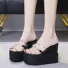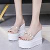 White Slipper Women Summer Fashion Platform Sequined Slippers Slope Heel Women Shoes Rhinestone Transparent Wedges Slides