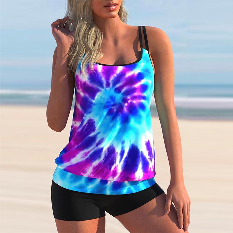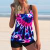 Women Tie Dye Print Swimwear Plus Size Tummy Control Swimwear Bikinis Retro Tankini With Shorts Beach Bathing Suit
