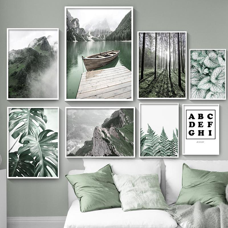 Posters And Prints Nordic Green Plant Monstera Forest Lake Mountain Wall Art Canvas Painting Pictures For Living Room Home Decor