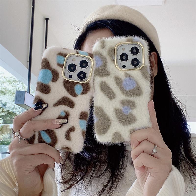 Moskado Fashion Leopard Print Pattern Plush Phone Case For Iphone 14 11 12 13 Pro Max X Xr Xs Max 7 8 14plus Soft Tpu Back Cover