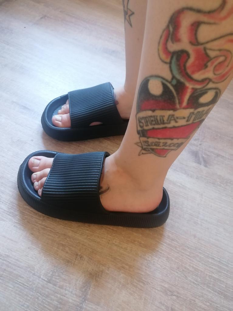 [Awesome Slippers] 💓 delivery: I received the item 14 days after ordering. That's great. size: I ordered the shoes in size 36/37. I have the size. 37 and they fit well. optics: I ordered them in black. I like them very much. Materials/Quality: The shoes are light and easy to walk in. The quality is good and they are definitely an eye-catcher. 😍