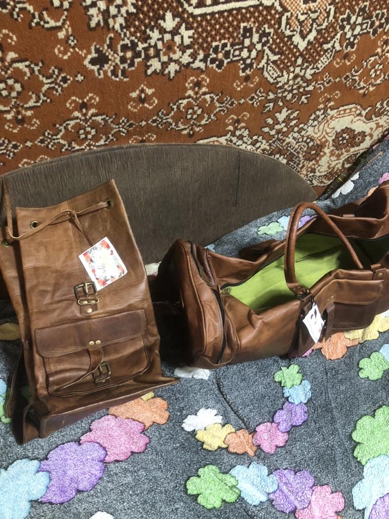 Combo Leather Bag Gym Travel Luggage Duffel Weekend Overnight Backpack 2 Bags — buy online with free worldwide shipping!