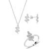 Silver Rhodium-plated Zircon Stone Clover Necklace and Earrings Double Set