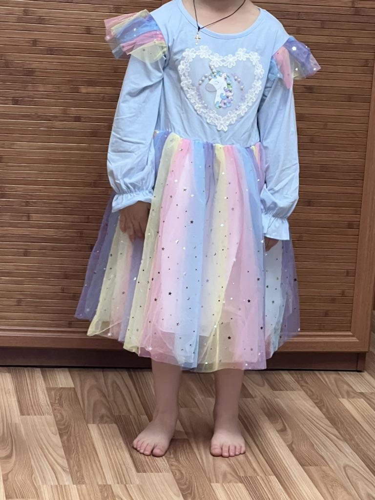 2024 New Spring Autumn Toddler Daily Girls Dresses Long Sleeve Sequin Unicorn Princess Costume Tutu Party Xmas Gift 3-10 Years — buy online with free worldwide shipping!