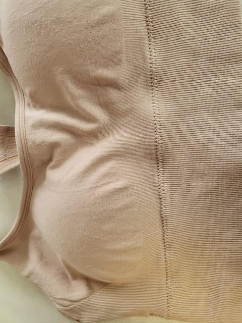 Bra shirt beige 2XL is too tight. Here too, the cups are sewn in too small and the breasts bulge out of the cups all around. In addition, the ribbed material is terribly scratchy. I have bought several bra shirts (XL) and none of them have scratched and the sewn-in cups were not sewn in too small.