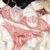 French Ultra Thin Lace Splicing Bra Set for Women Underwear Sexy Silk Breathable Bra and Panties Set Summer Comfortable Lingerie