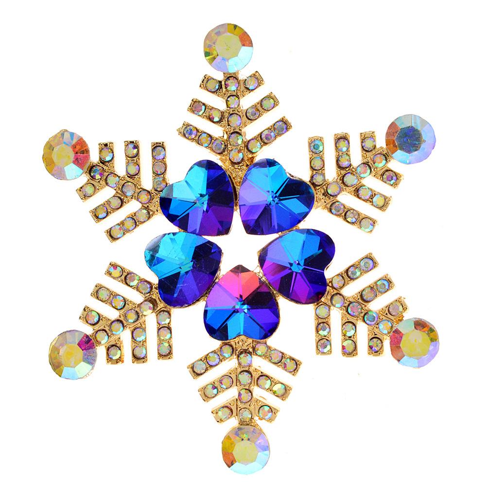 Female Fashion Rainbow Crystal Snowflake Brooches For Women Luxury Yellow Gold Silver Color Alloy Round Brooch Safety Pins — buy online with free worldwide shipping!