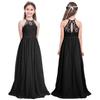 Girls Lace Chiffon Sleeveless Halter Flower Girl Dress Princess Pageant Wedding Bridesmaid Birthday Party Dress