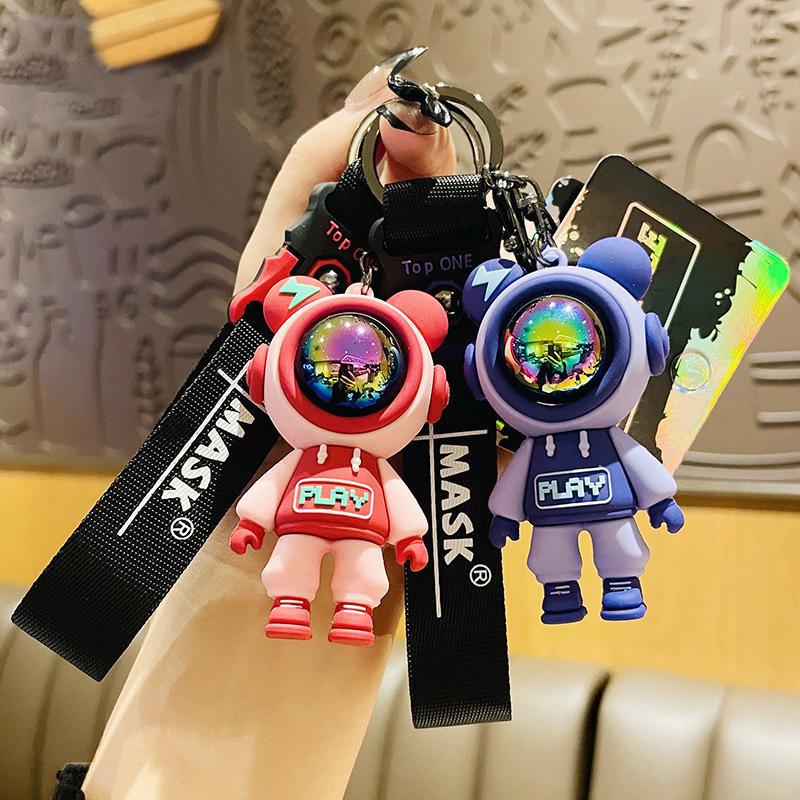 Creative Epoxy Cool Lightning Play Bear Keychain Female Trend Exquisite Fashion Car KeyRing Bag Pendant Boys Gifts