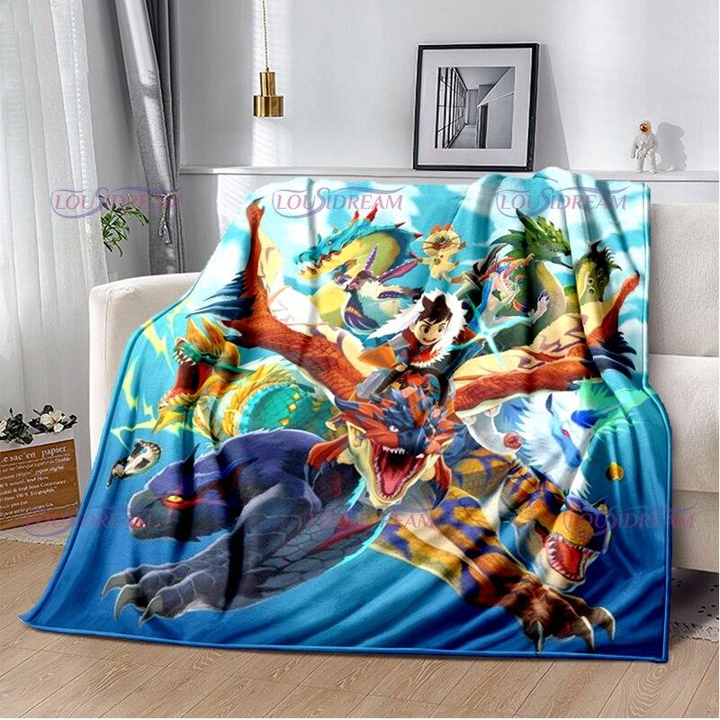 Monster Hunter Stories Soft Flannel Blanket Cartoon Blanket for All Seasons Warm Cozy Fluffy Blanket for Sofa Bed Living Room