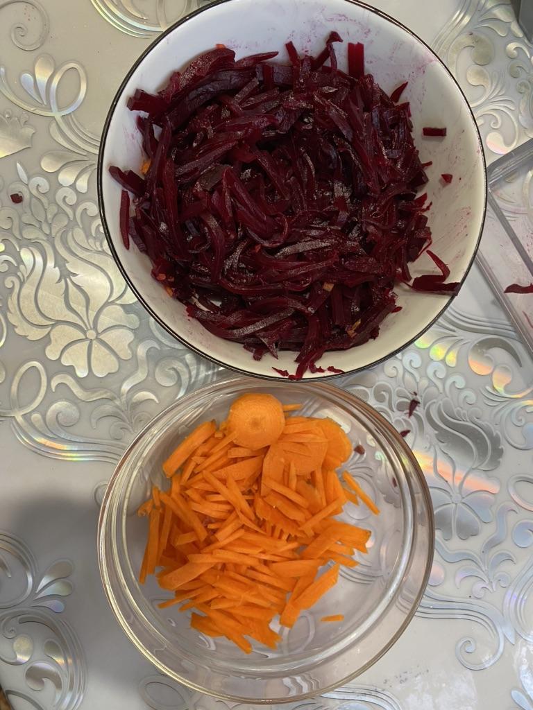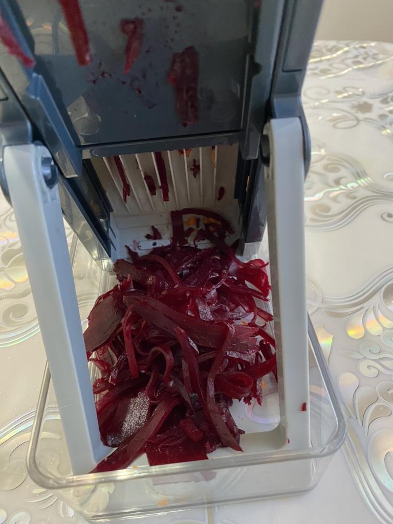 Necessary tool in the kitchen. I specify. The beet is cooked. The carrot given through all three knives it contains. However, some of the vegetables remain at the end. Not everything is put on the grater until the end.