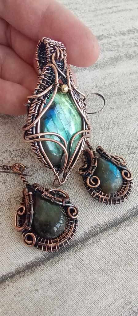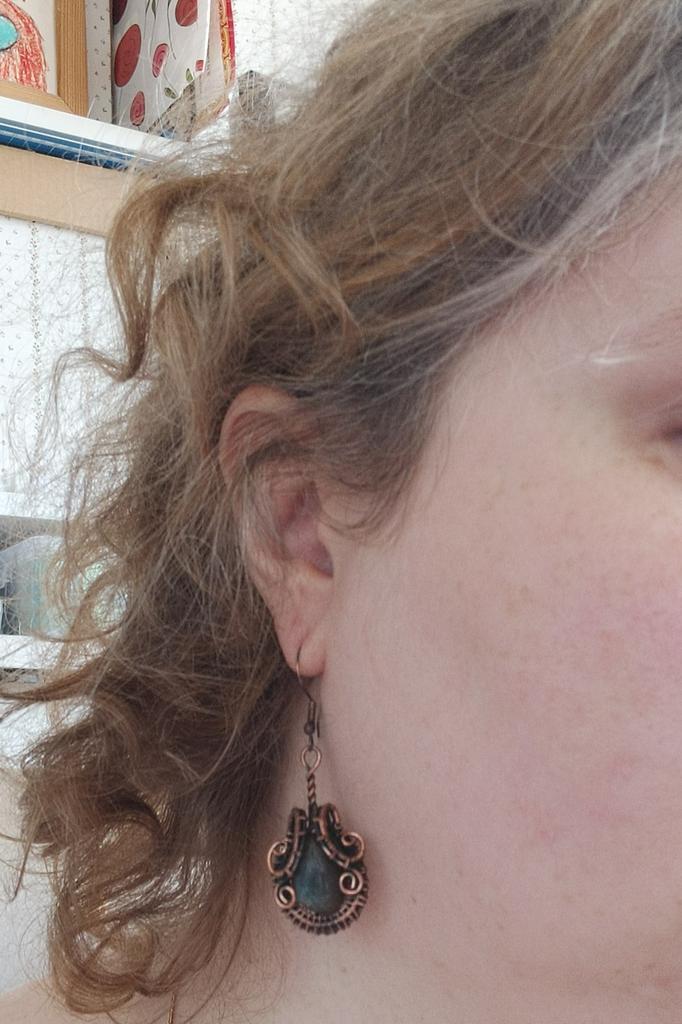 Beautiful Labradorite Gemstone Pure Copper Wire Wrapped Handmade Earrings Gift For Her — buy online with free worldwide shipping!