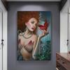 Abstract Long Hair Mermaid Canvas Painting Mermail Posters and Prints Wall Art Pictures For Living Room Home Decor No Frame