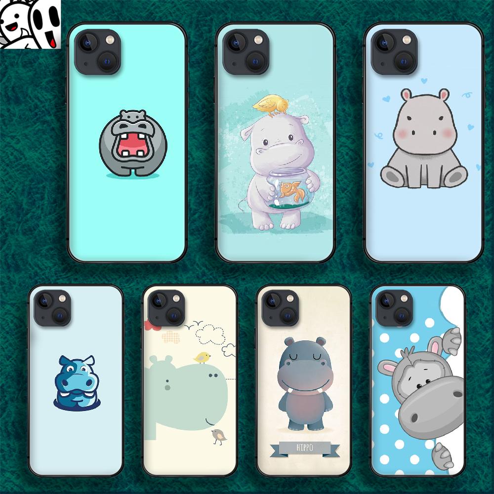 Cartoon Hippo Phone Case For iPhone Samsung Galaxy Redmi Xiaomi Oppo OnePlus Note S A 7 8 9 10 11 12 13 14 20 21 22 23 53 54 Pro Max Plus Ultra