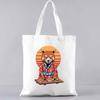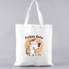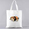 Fashion Shopping Bag Casual Canvas Shoulder Bag Commuter Reusable Japanese Cat Pattern Print Harajuku Bag