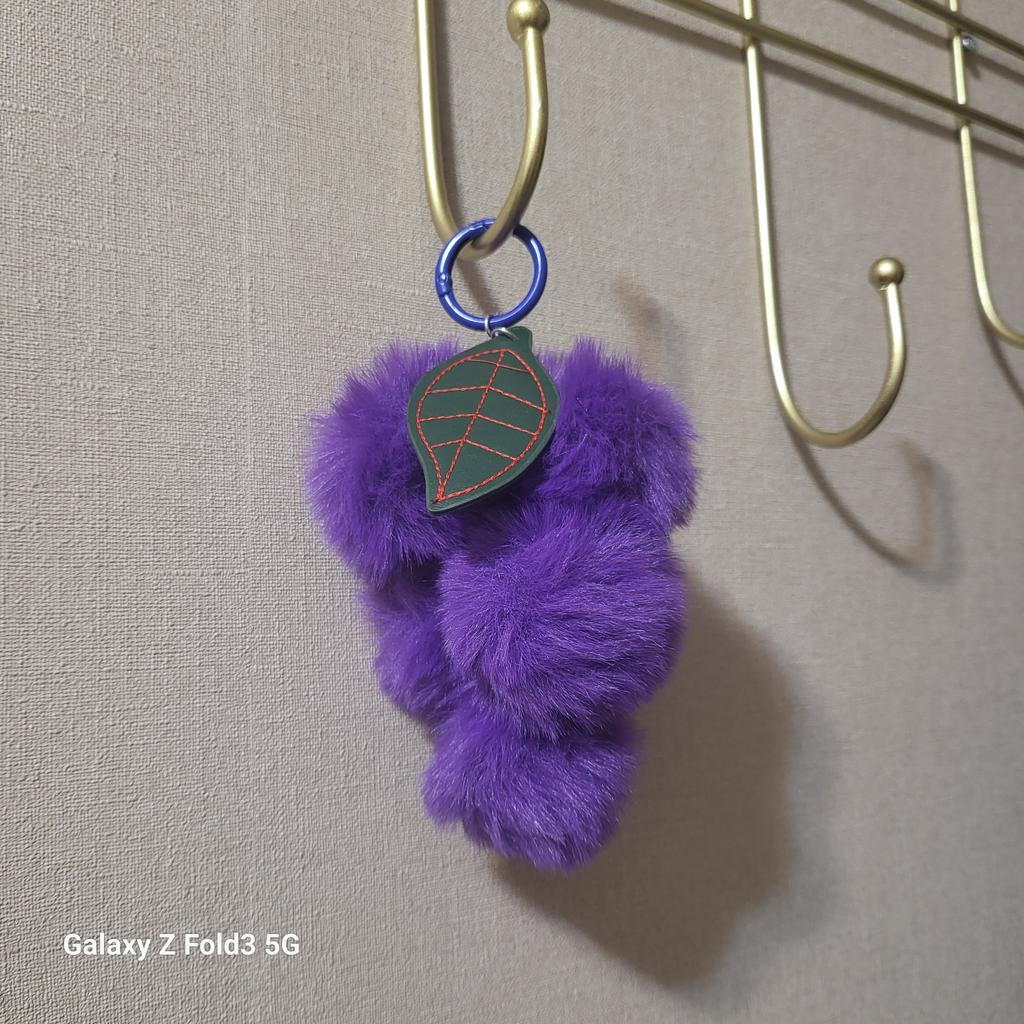 Lovely Grape Pom Poms Keychains Fluffy Pompoms Keychain Rex Rabbit Fur Pompoms Keyring Car Key Chain Pendant Accessories