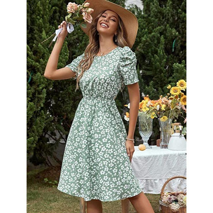Style Name : Boho Dress , Material Composition: Premium Quality Poly Rayon , Neck Style: Round Neck , Sleeve Type : Puff Sleeves , Sleeve Length : Short Sleeve , This dress is designed with Western Floral print idea's which gives a classy and beautiful look , This dress is versatile, comfortable and universally flattering. It is a stunner and makes an everlasting statement whenever you wear it.