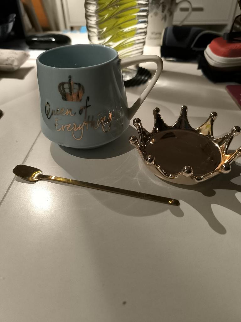 I love it, my absolute favorite cup 🥰 One is for tea and the other for coffee, the difference in size is to show that the same amount actually fits in both cups👍