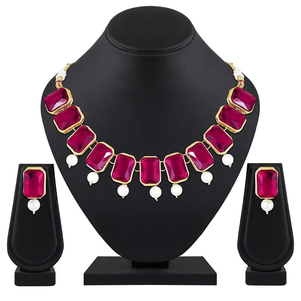Peora Traditional Jewellery Crystal Pearl Necklace Earring Jewellery Set for Women — buy online with free worldwide shipping!