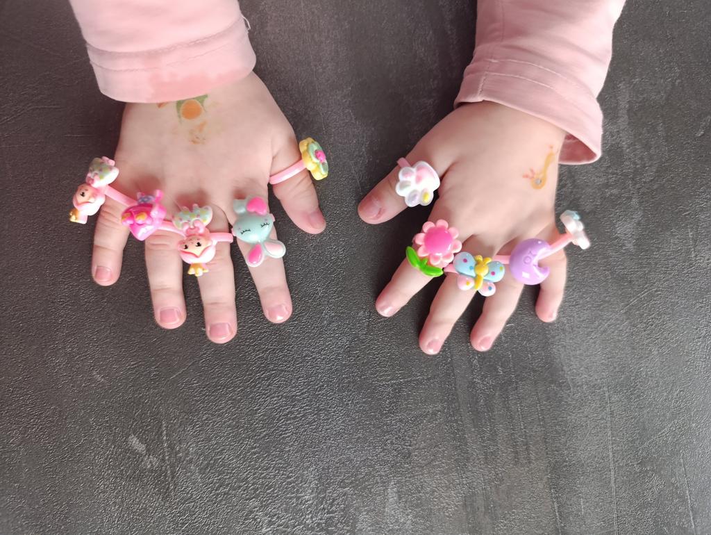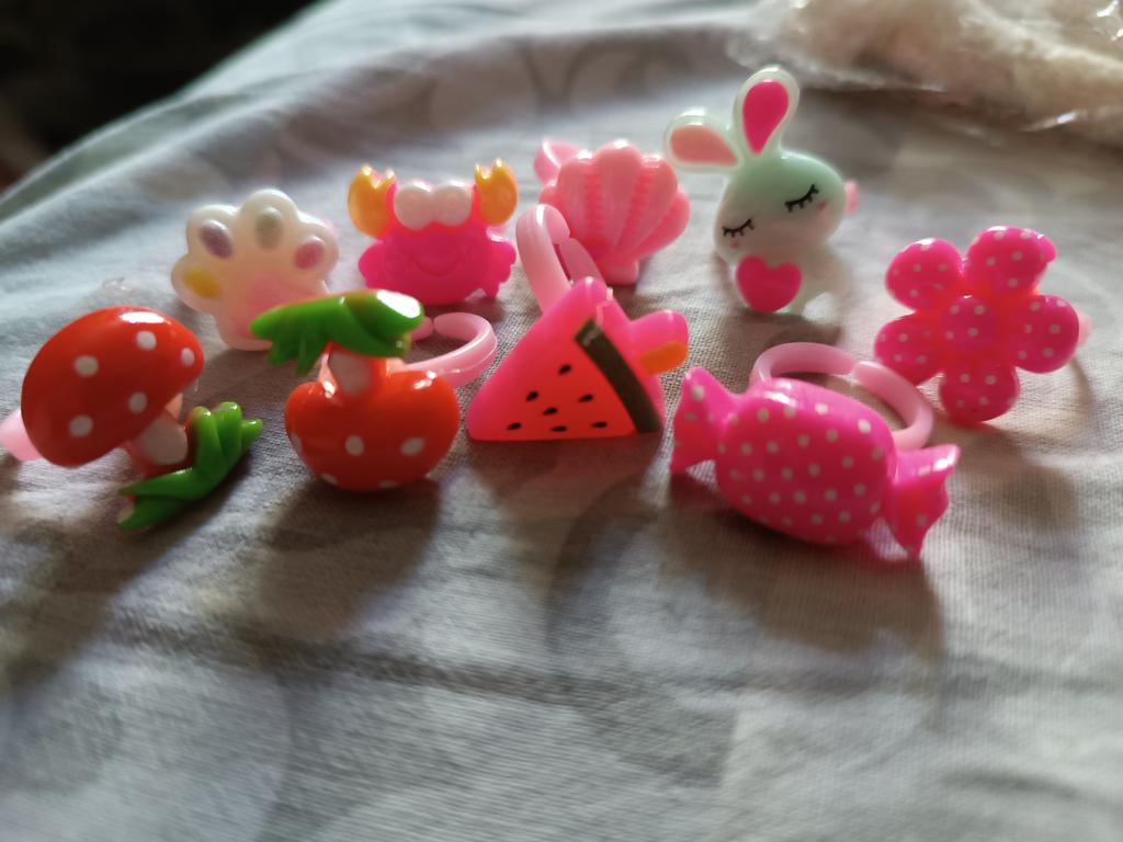 The rings are very good. Just what little fashionistas need. (The package was cut and there were 9 rings in the set)