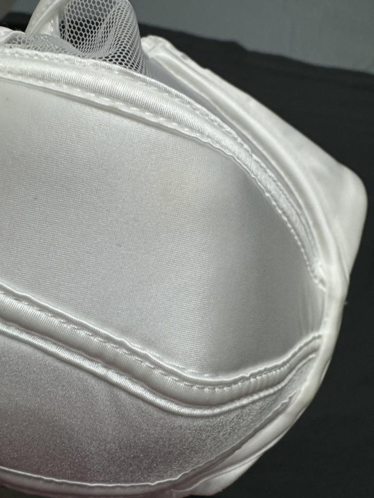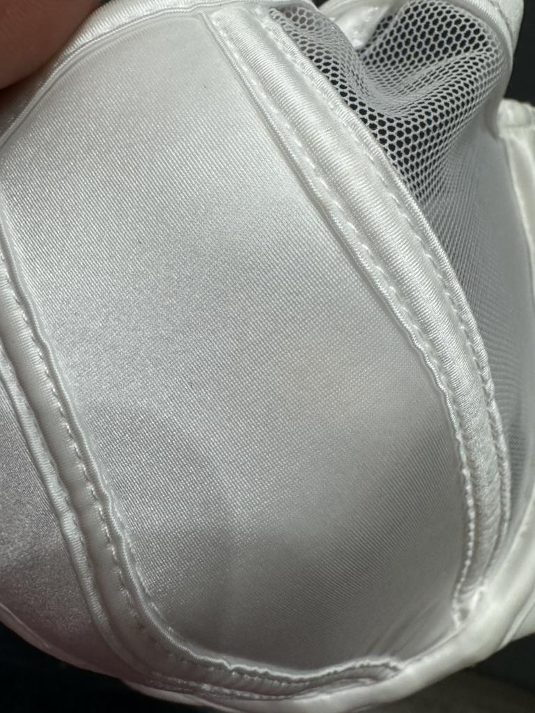 It has a yellow stain, the picture does not show how it is in reality, the stain is darker. Otherwise, the quality is great, but unfortunately it is small, the cup does not coincide with C, it is more like a B.