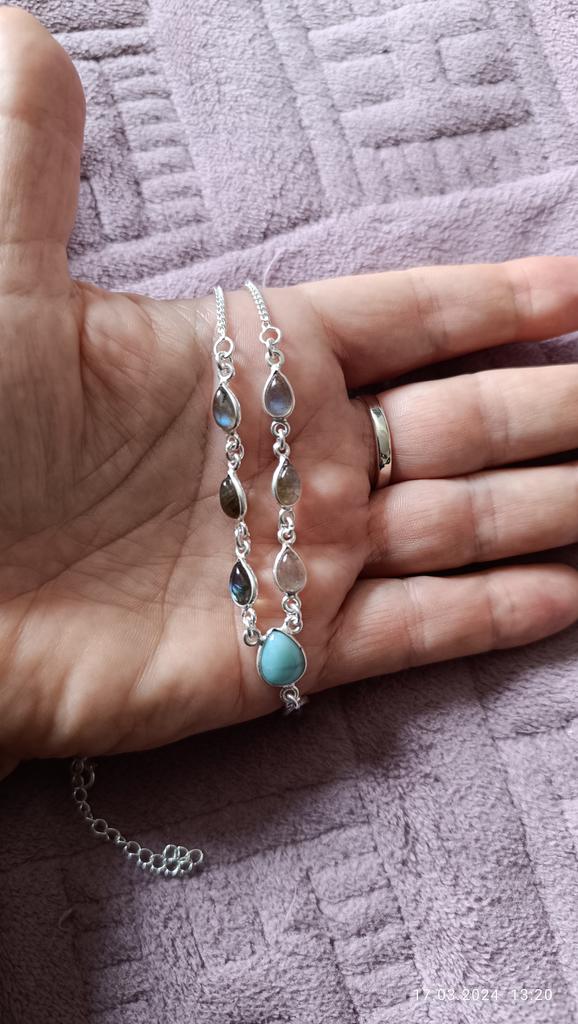 Larimar Labradorite Gemstone Women Necklace 925 Sterling Silver Handmade Jewelry — buy online with free worldwide shipping!