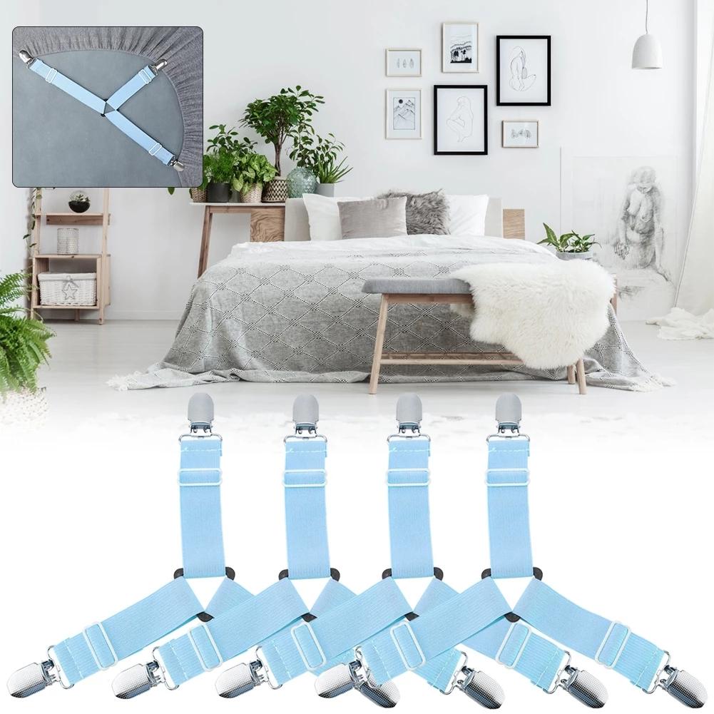 4PCS Blue Triangle Bed Mattress Sheet Clips Grippers Straps Suspender Fastener Holder