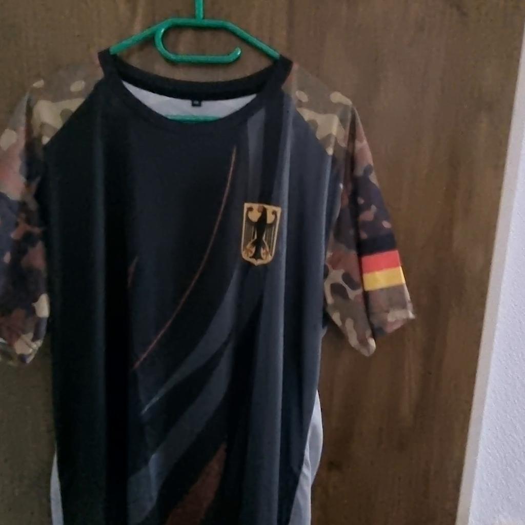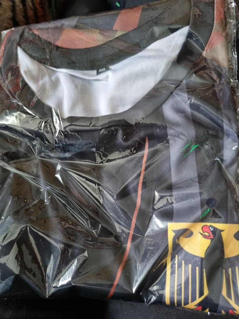 Rating for Y6ED3QXP First of all, the good points. The quality of the material is really good for the money The colors are strong and the shirt is comfortable to wear. Unfortunately the size information is a bit misleading I usually have XL, I thought 2XL would fit, but it's really tight. But that applies to all the items I've ordered. A note would be good that you should order 2 sizes larger than your usual size. The really annoying thing is the misprint on the sleeves. I assume that originally it should say GERMANY, but actually it says GEROAny. I looked it up, it has absolutely no meaning. Well, what the heck, I just have to sew something over it. You should also update your delivery dates by email during an ongoing order. When ordering it said 06 -16 June. In fact it arrived on 19 June. 3 days later than the last possible date, which would not be so bad if I had at least received an email that the order was delayed. So I sat on hot coals for 3 days without knowing anything.