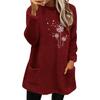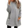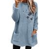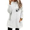 O-Neck Long Sleeves Pockets Mid-Length Winter Sweatshirt Women Loose Fit Embroidery Cat Pattern Fleece Pullover Top