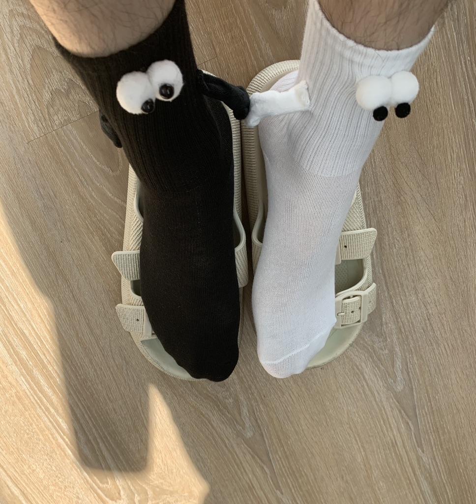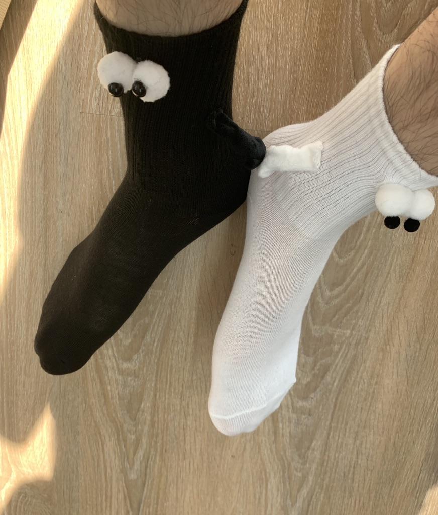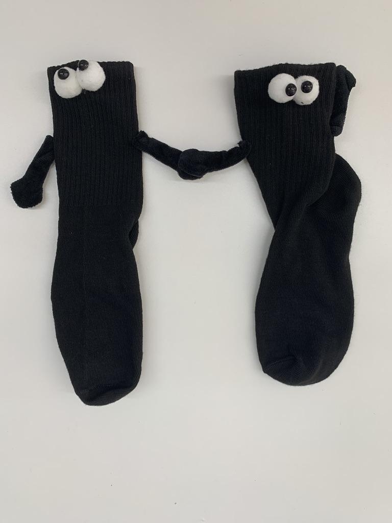 1 Pair Couple Socks Ins Fashion Funny Creative Magnetic Attraction Hands Black White Cartoon Eyes Couples Socks Hand In Hand