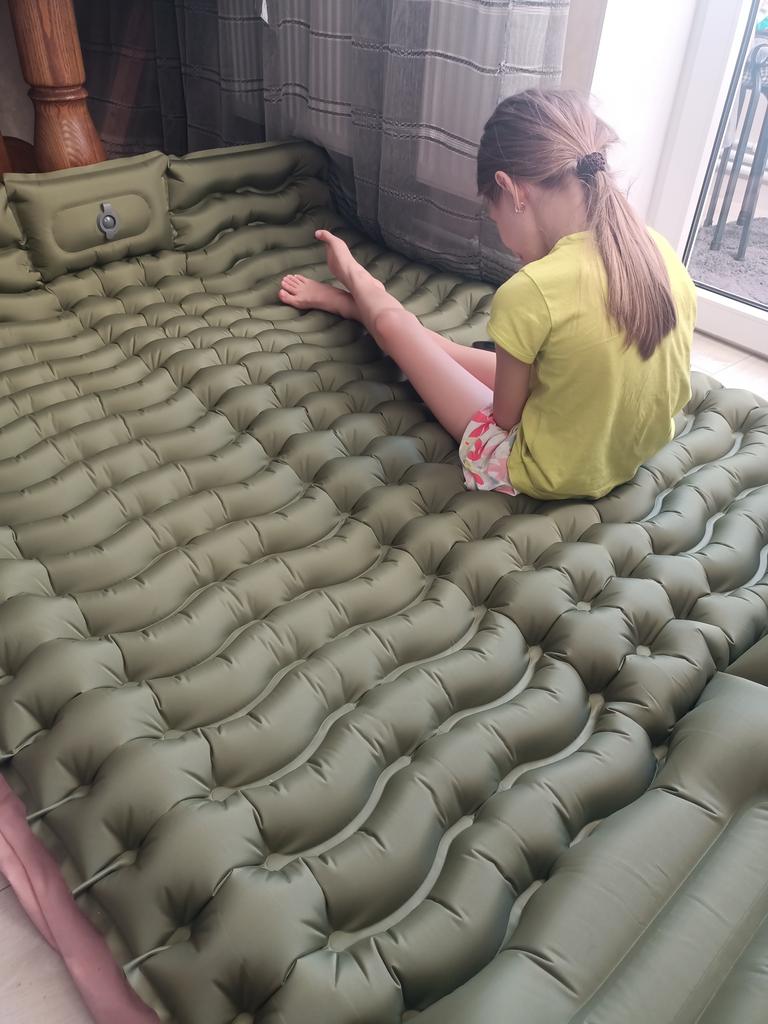 The sizes correspond, it is easy to inflate with your foot. If you sit, you can feel the ground. Lying down, everything is fine, you don’t touch the ground.