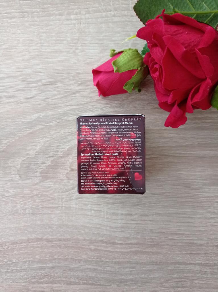 Honey-herb paste with epimedium extract ❤️ The volume is 43 g, so the volume is not large, but this does not make the product itself less valuable 😉. Epimedium paste (Epimedyumlu Macun) is a natural remedy based on plant components, which is often recommended for use by men and women to improve potency and increase libido. I think you already know about this. Epimedium paste is not only a natural aphrodisiac, which significantly improves sensuality, it is also recommended for menstrual cycle disorders and inflammatory processes (of course, always consult your family doctor in such matters). The pasta has a very good composition. In addition to epimedium extract, it also includes: pollen, ginger extract, oat extract, royal jelly, ginseng extract, cinnamon, ginkgo biloba extract and many other healing components. The paste has a pleasant aroma of honey 🍯 and herbs 🌾, the taste is sweet and spicy. I like such combinations ☺️ Pasta improves well-being, increases work capacity and strengthens immunity . I liked the pasta. If the information was useful, put it as a favorite ❤️. I received the product in 15 days by "Nova Poshta" 🚀 The track was tracked completely. The arrival at the point of issue was announced by sms 📲. The product was carefully wrapped in a thick layer of packaging material. Everything arrived intact. The neck of the jar with paste is sealed in mica. All the necessary information is present on the box, and important information is also duplicated on the jar itself. Happy shopping and fast deliveries to everyone 🛍️☺️🚀🍁 Comfort and well-being to you and your families 🏡❤️