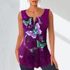 Women's Fashion V Neck Shirts Casual Tops T-shirt Ladies 3D Flying Butterfly Print Vest Plus Size Sleeveless Blouse Tank Tops