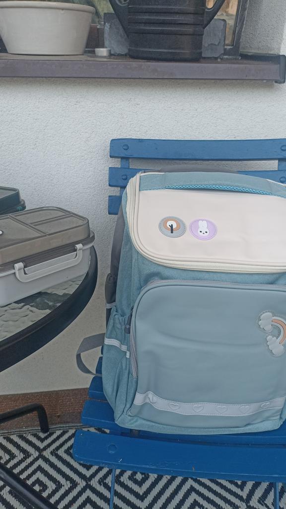 The backpack looks good, nice colors, good quality material, the large size of the backpack is suitable for a first-grade child. As for the drawbacks: Poor quality zippers, sewn carelessly. Small capacity pocket, doesn't fit a lunchbox, the bottom of the backpack is not rigid.