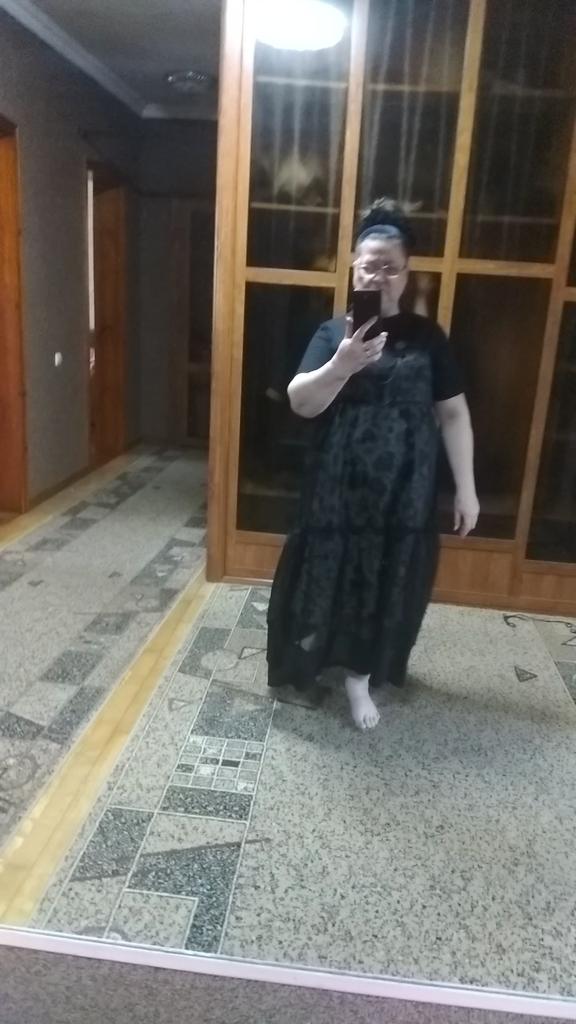 The size fits my 52-54. The length, I would like it to be longer, I will finish the hem. I finished the frill at the bottom.