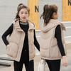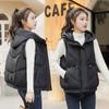 Women Autumn Winter Hooded Collar Sleeveless Solid Color Drawstring Warm Coat Vest
