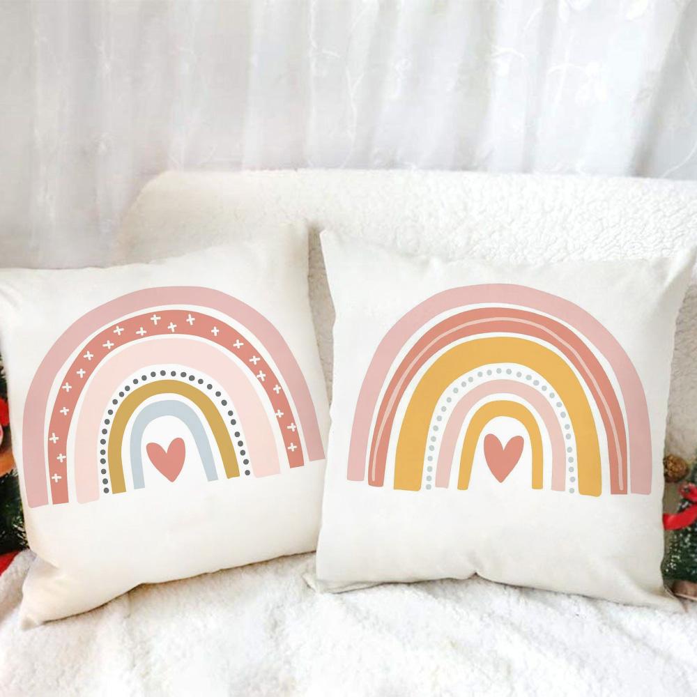 Rainbow Cute Print Pattern Throw Pillowcase Home Sofa Bed Decorative Pillowcase Car Office Decorative Pillowcase