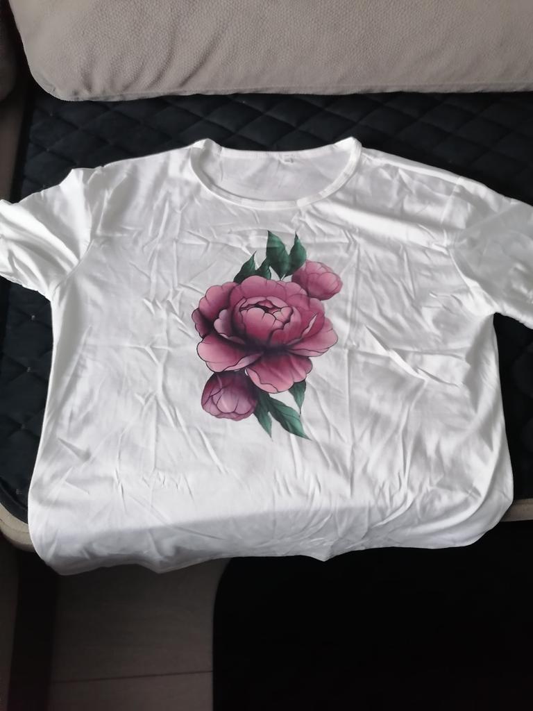 (Asian Size) Tee Top Fashion Love Letter Watercolor Flower T Shirt Women Print Lady Female Clothing Casual Short Sleeve Graphic T-shirt