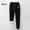 Women Black Grey Plus Size Sweatpants Winter Embroidery Casual Pants Fleece Lined Velvet Warm