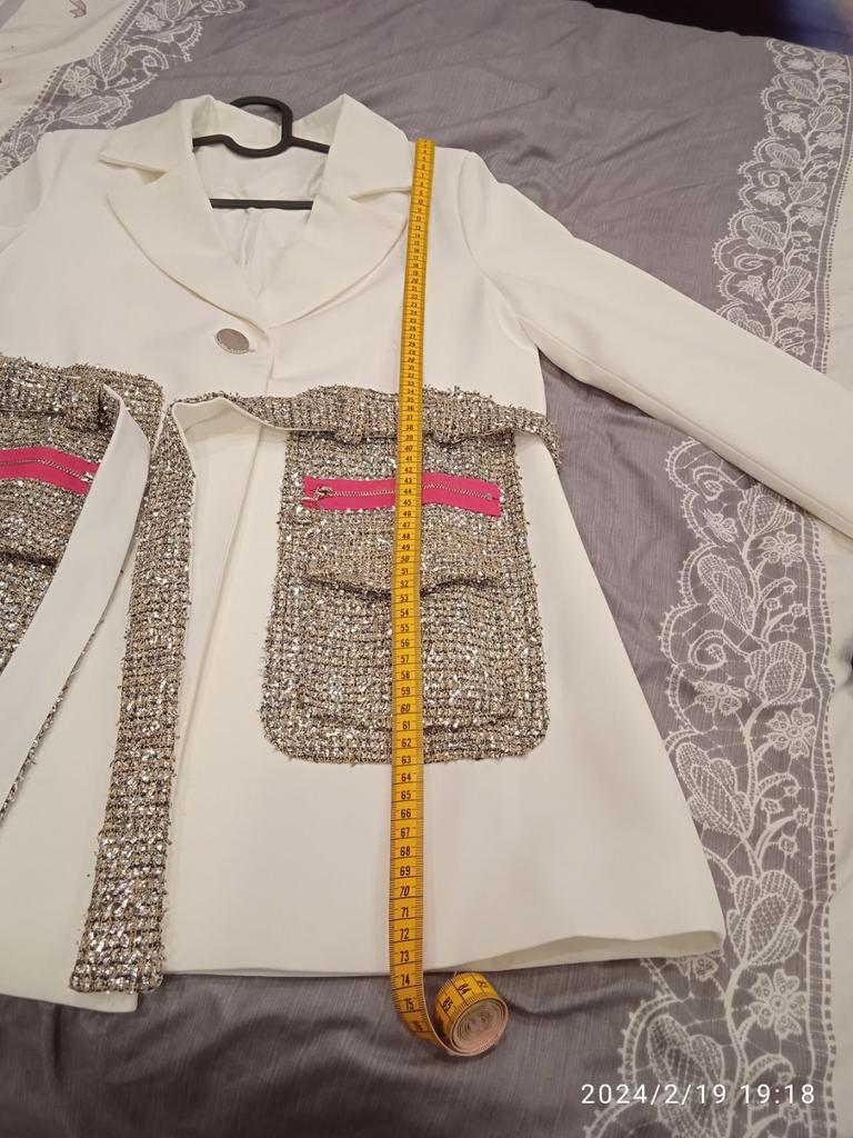 The jacket is very beautiful, the fabric is of good quality and the tailoring is normal, all labels and tags are present. Size L, extreme for my parameters. But it turned out to be smaller than the seller declared. I could hardly squeeze in, cramped in the shoulders and sleeves, such a shame, such a good model. The JV returned part of the funds. I will take it to the studio, maybe you can loosen it a little at the seams, or sew the inserts. I really liked the jacket.