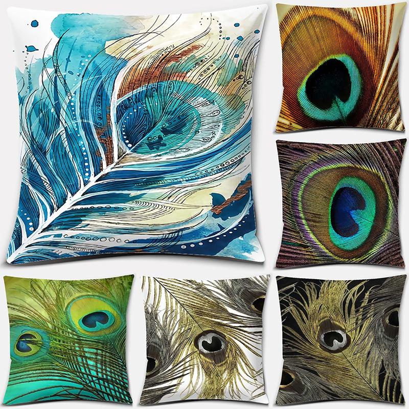 Peacock feather series pattern decorative pillowcase, square pillowcase, home office decoration funda de almohada — buy online with free worldwide shipping!