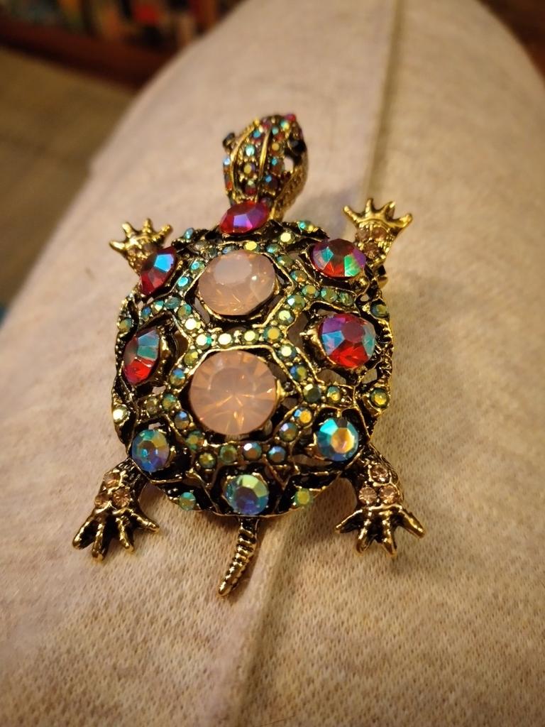 Tortoise Brooch Rhinestone Faux Crystal Colorful Turtle Pin Brooch Lapel Pins Vintage — buy online with free worldwide shipping!