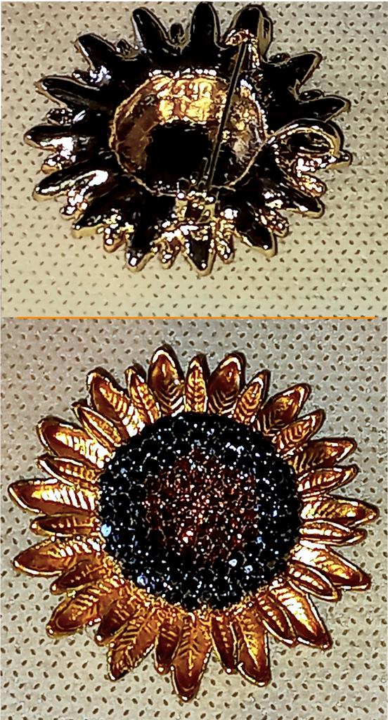 Sparkling Sunflower Brooch Outfit Decor Rhinestone Flower Pin Realistic Stainless Sunflower Floral Pin Clothes — buy online with free worldwide shipping!