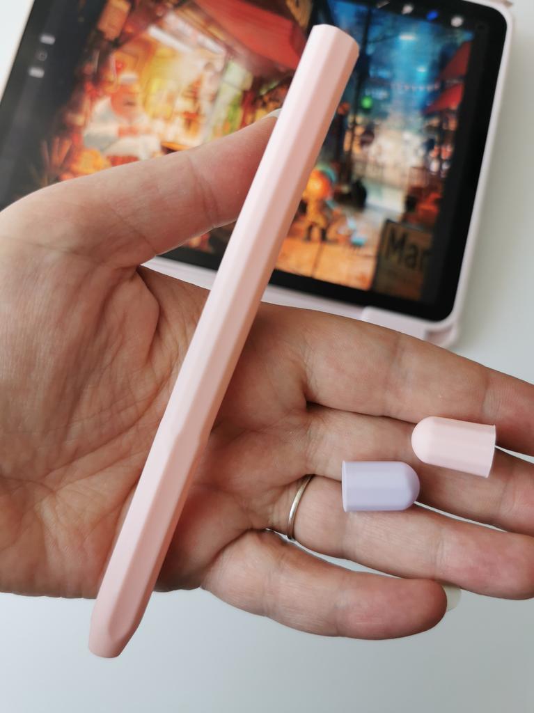 Protective Silicone Case for Graphics Tablet Pen. The case is made of flexible silicone but thick enough to cushion any possible blows it may suffer.. I ordered it in pink and it comes with the cap in pink and purple (all in pastel tones). It is perfectly compatible with the Apple brand pencil (I tested it with the first generation pencil and it fits well, it also works with the new second generation pencils). Shipping was fast, well packaged and tracked until delivery. It has a very affordable price so I think it is really worth it to protect your digital pencils.