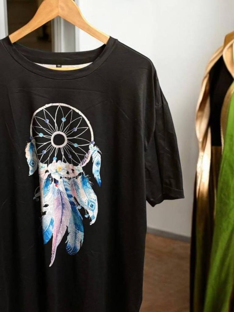 Women Black T Shirt Watercolor Dreamcatcher Printed Tops Tee Female Casual Tops Ladies Fashion T-shirt Woman Tops Tee Clothe