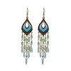Vintage Ethnic Long Water Drop Tassel Earrings for Women Boho Colorful Hollow Flower Rhinestone Crystal Dangle Earrings