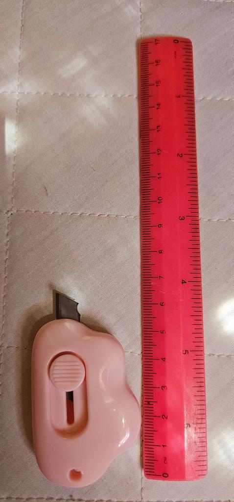 Got exactly what I've ordered (size, functionality, colour, material) and it even arrived early! Cute, very portable cutter that is pretty sharp. The short blade is retractable (spring mechanism), but it snaps into place when pushed all the way out.