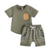Toddler Baby Boy Summer Clothes Color Block Short Sleeve T-Shirt Tops Solid Shorts Set 2Pcs Infant Causal Outfits