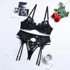 3-Piece Lace Bra Sets Hollow Out Heart Pattern Sexy Lingerie Set Ladies Black Panty Underwear Set ZPG